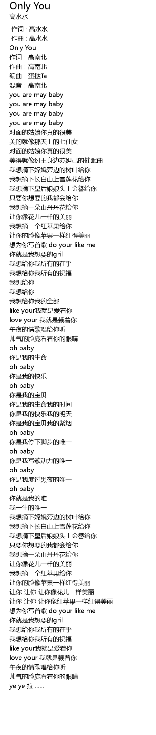| [00:17.443] | you are may baby |
