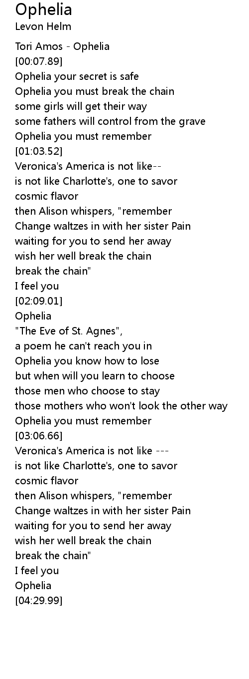 Ophelia you must break the chain |