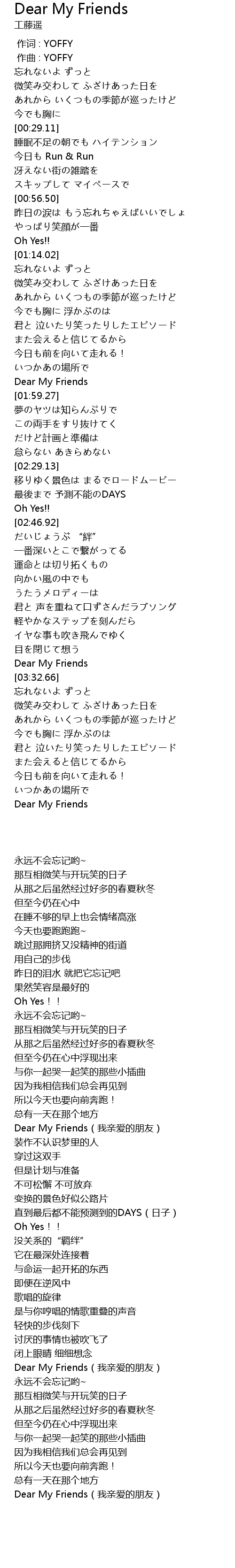 | [03:28.19] | Dear My Friends |