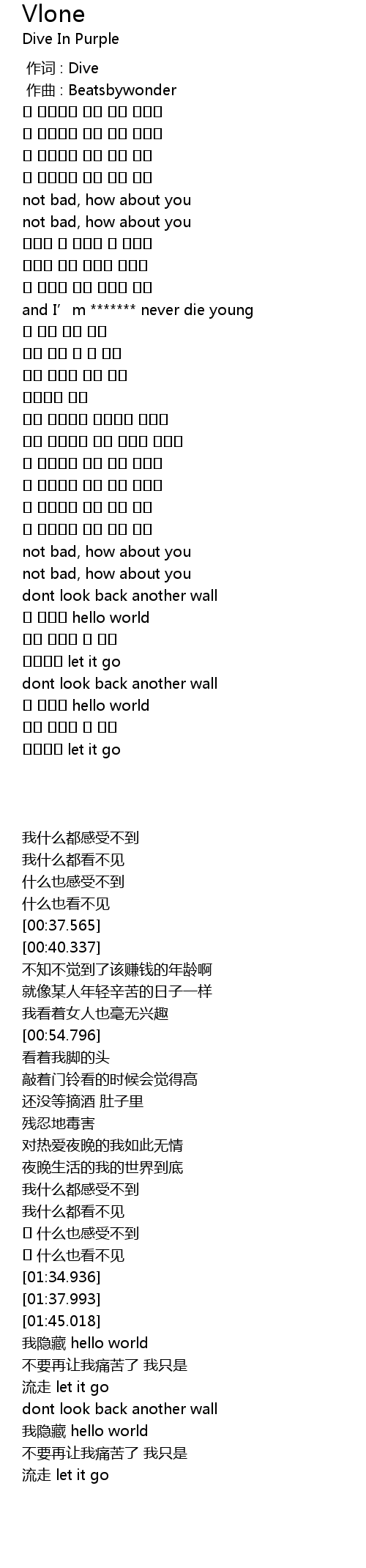 | [00:01.000] | zuo qu : Beatsbywonder |