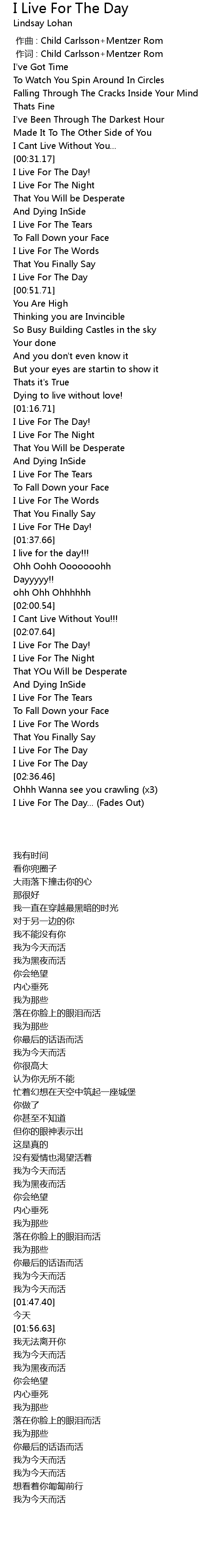 | [00:49.70] | I Live For The Day |