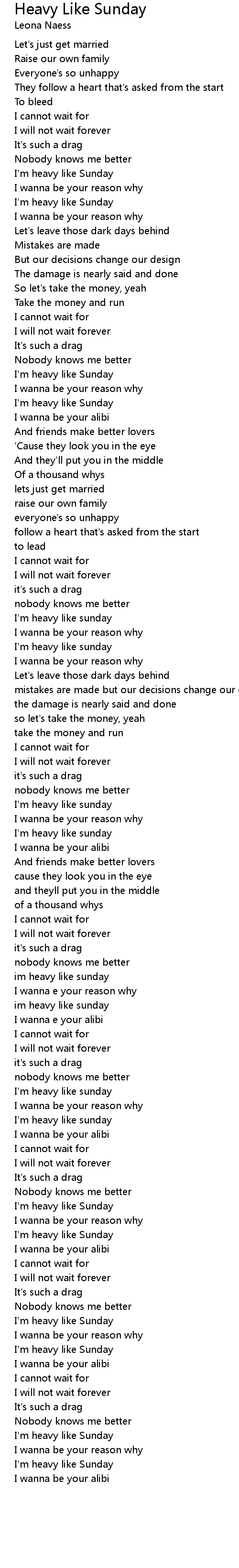 I'm heavy like sunday |