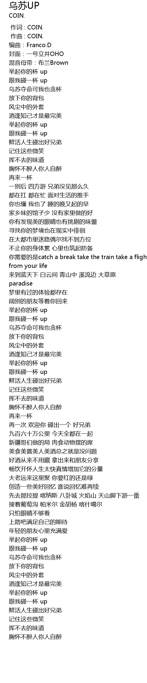 | [01:41.333] | gēn wǒ pèng yī bēi up |