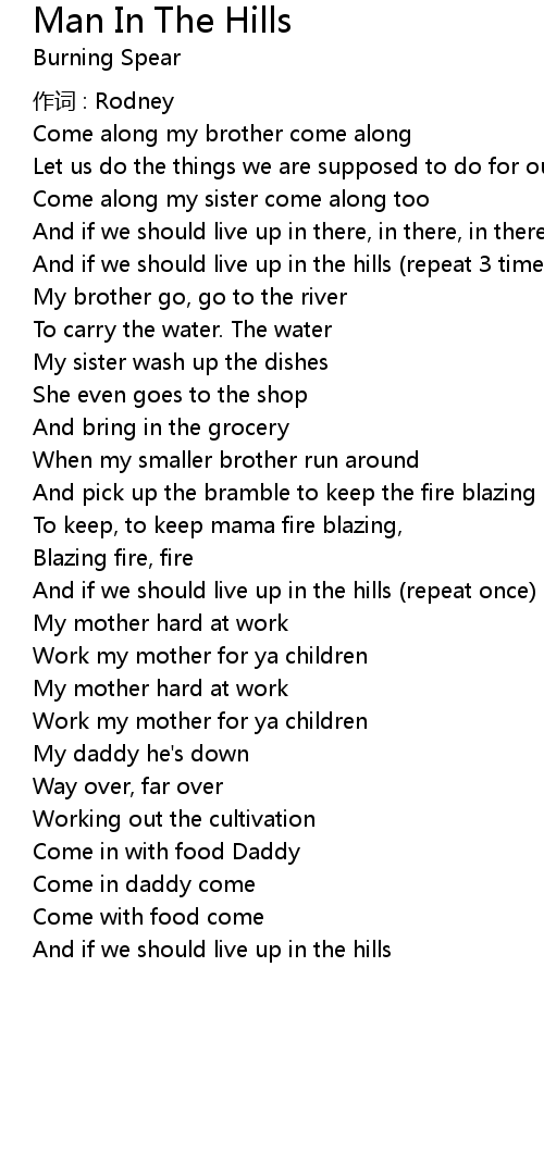 | And if we should live up in the hills (repeat 3 times) | |