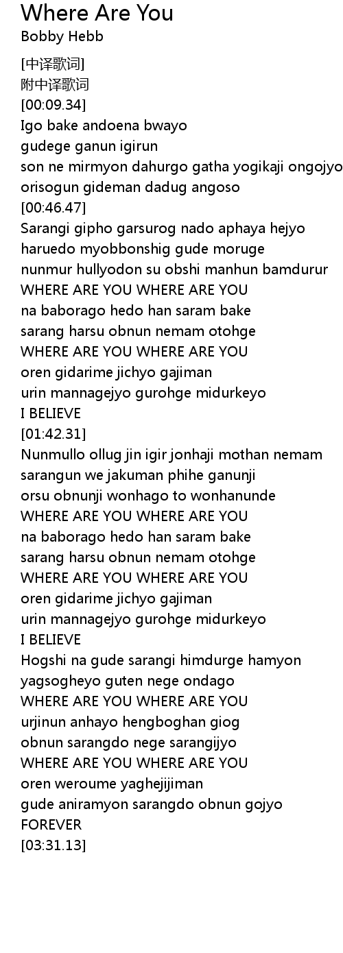 | [02:22.70] | WHERE ARE YOU WHERE ARE YOU |