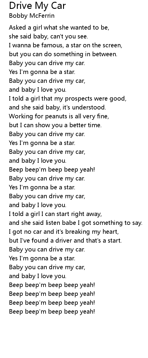 Baby you can drive my car. |