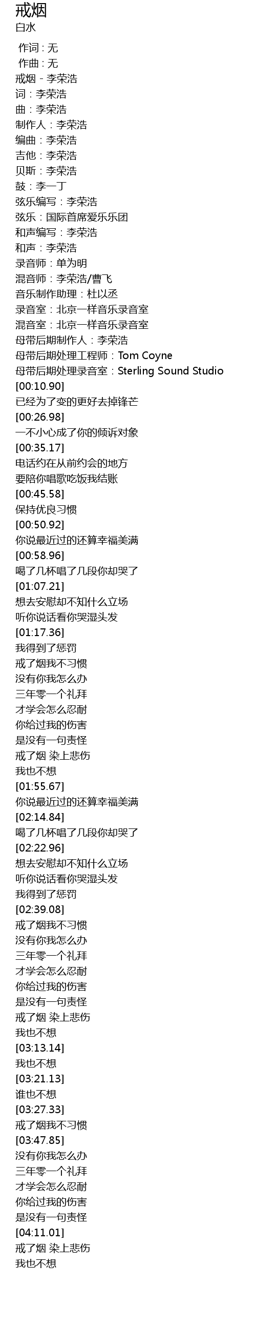 | [00:01.29] | 戒烟 - 李荣浩 |