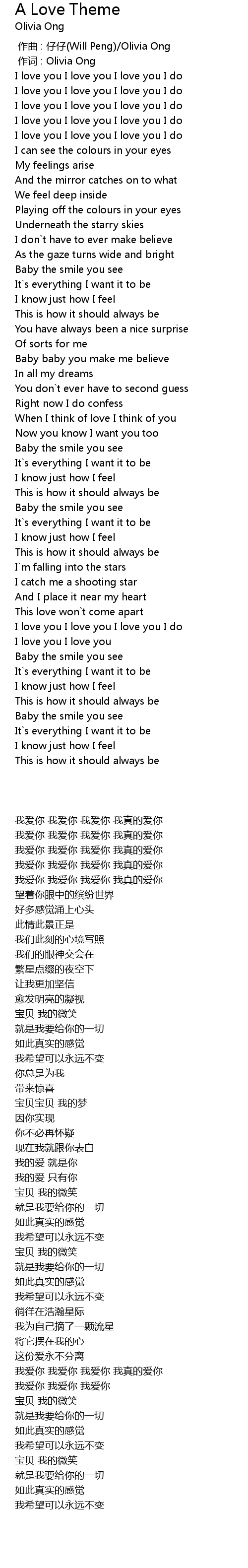 | [00:00.00] | zuo qu : zi zai Will Peng Olivia Ong |