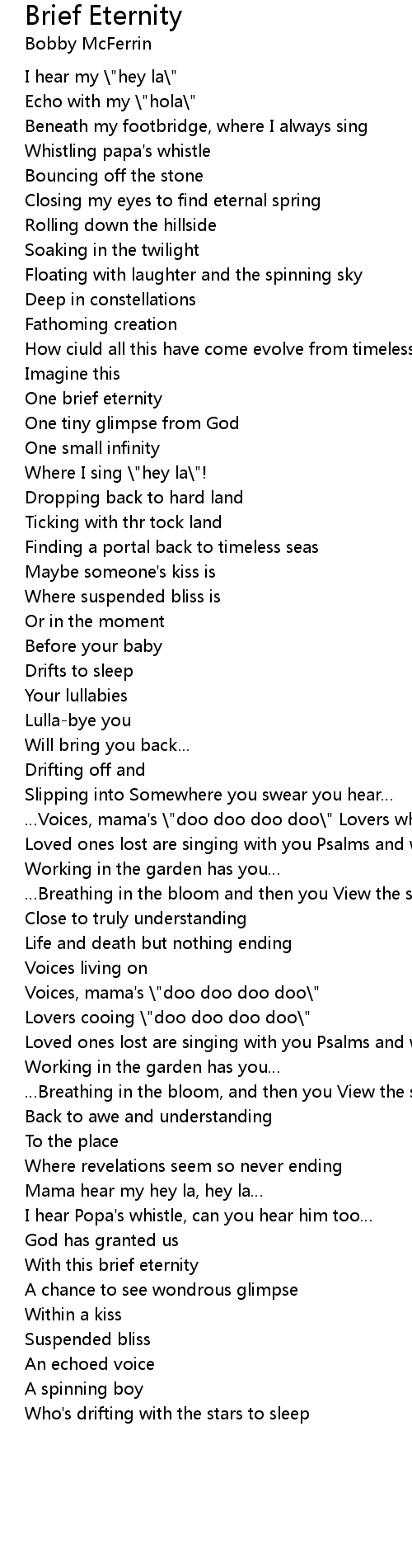 | …Voices, mama's \"doo doo doo doo\" Lovers whisper \"doo doo doo doo\" | |