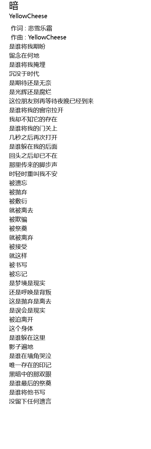 | [00:01.000] | zuò qǔ : YellowCheese |