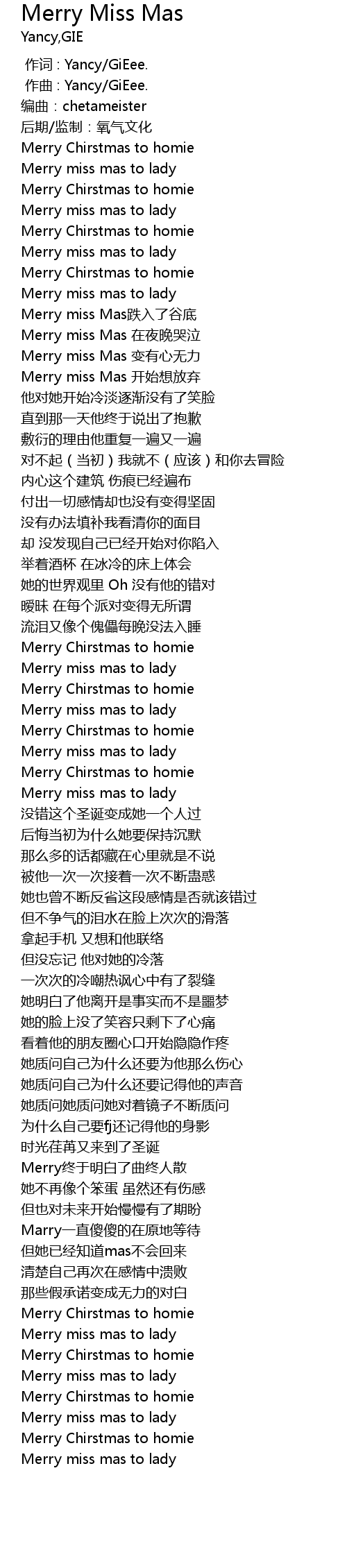 | [00:53.535] | Merry miss Mas 开始想放弃 |