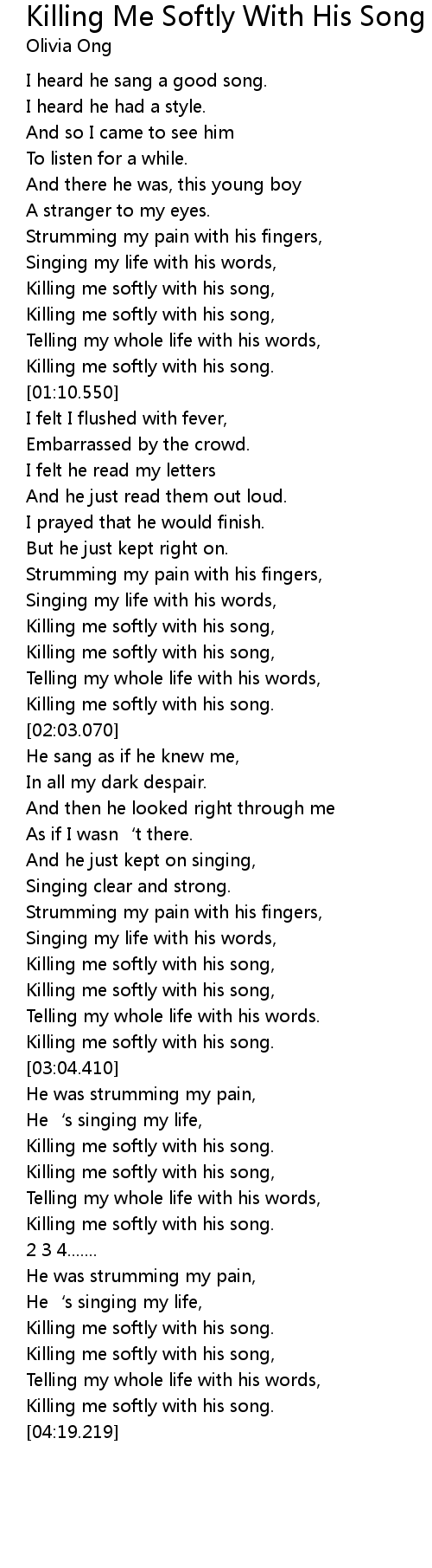 | [01:54.959] | Killing me softly with his song. |