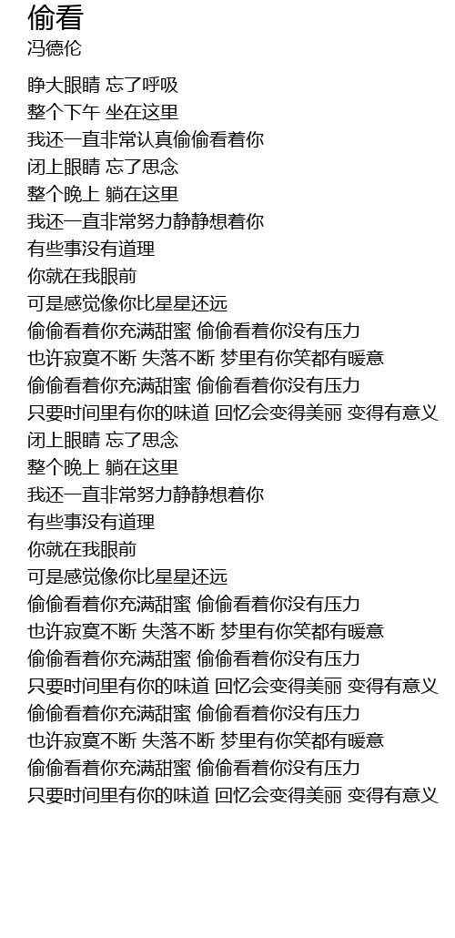 | [03:11.73] | 偷偷看着你充满甜蜜 偷偷看着你没有压力 |