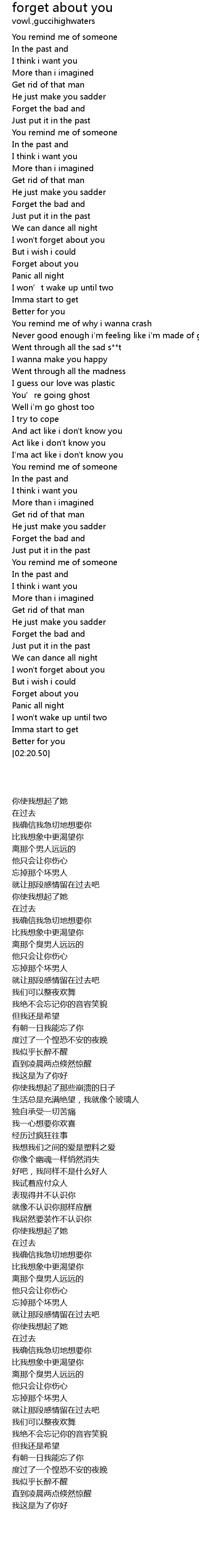 | [02:10.46] | Forget about you |