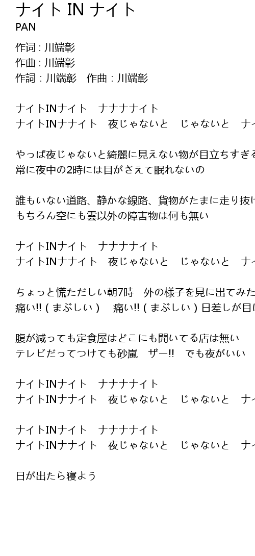 | ナイトINナナイト 夜じゃないと じゃないと ナイトINナナナナイト | |