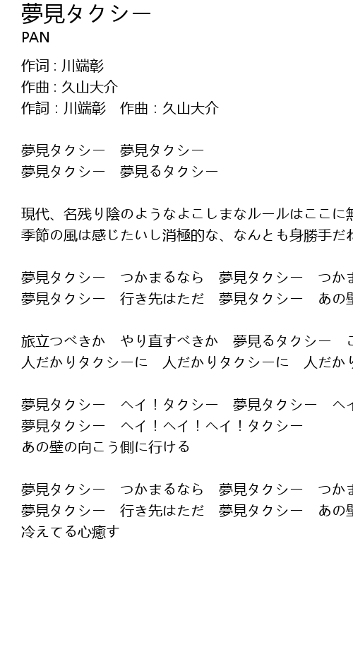 | 夢見タクシー つかまるなら 夢見タクシー つかまえてみたい | |