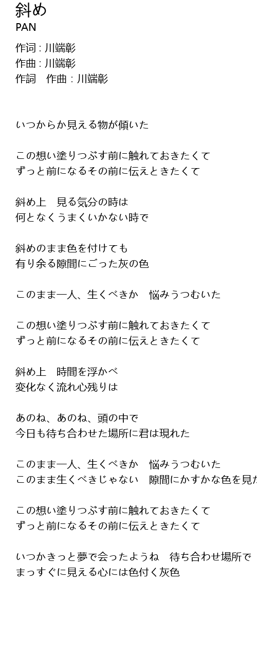 | 作词 : 川端彰 | |