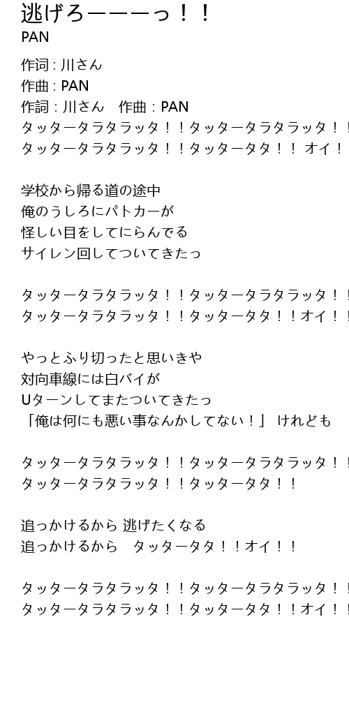 | Song | 逃げろーーーっ!! |