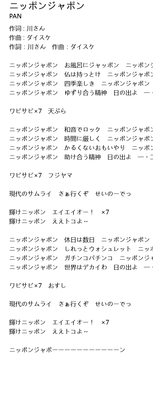 | ニッポンジャポン かるくないおもいやり ニッポンジャポン うらのないおもてなし | |