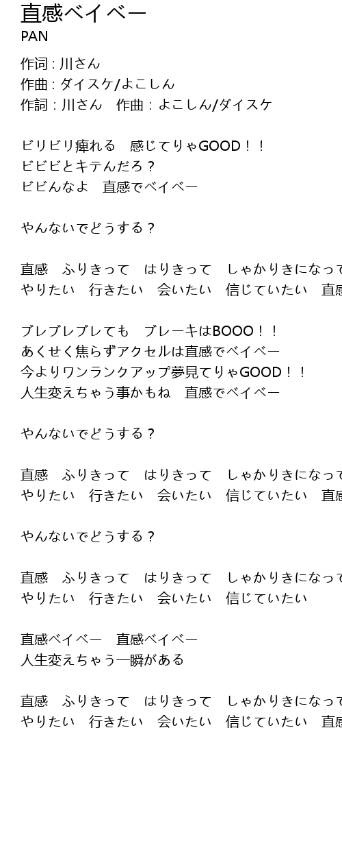 | Song | 直感ベイベー |