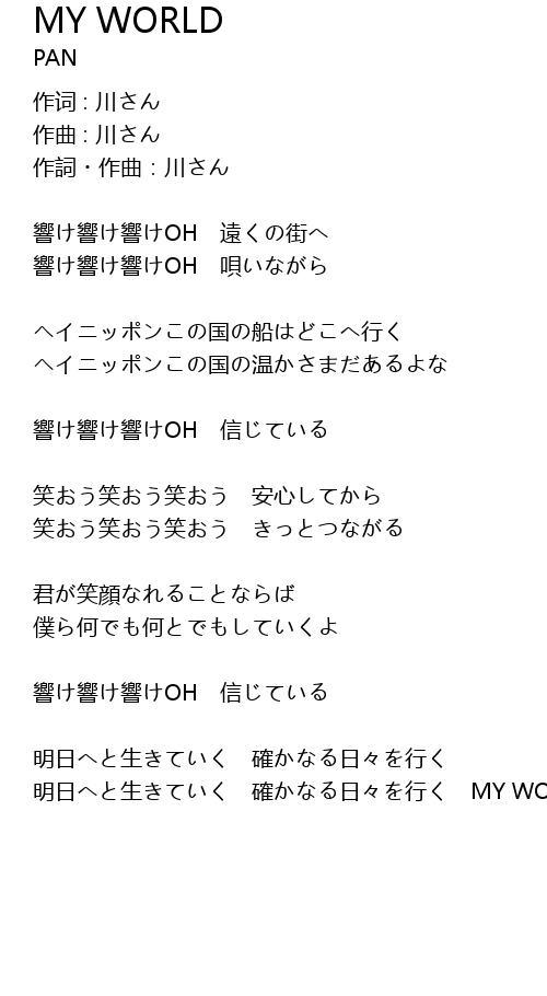 | 明日へと生きていく 確かなる日々を行く MY WORLD |