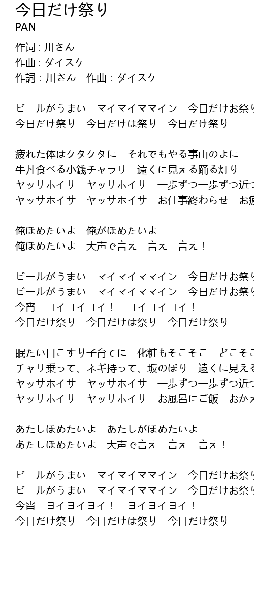 | 今日だけ祭り 今日だけは祭り 今日だけ祭り | |