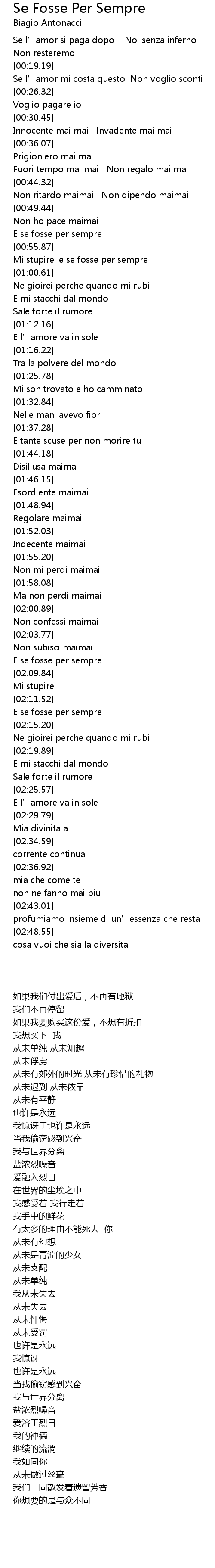 | [00:56.79] | Mi stupirei e se fosse per sempre |