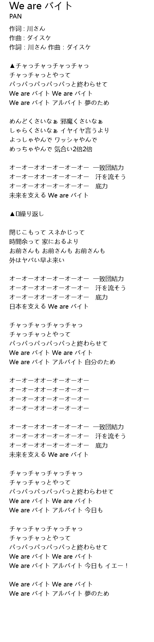 | Song | We are バイト |