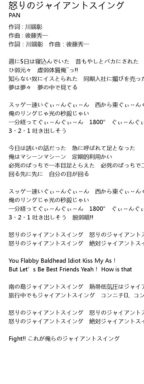 | Song | 怒りのジャイアントスイング |