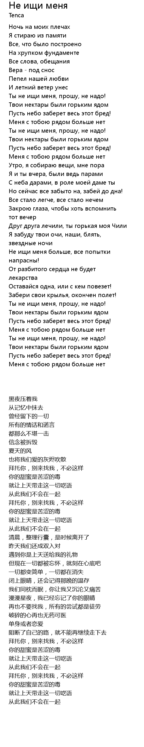 Не ищи меня больше, все попытки напрасны! |