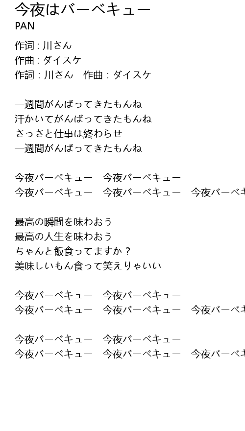 | 今夜バーベキュー 今夜バーベキュー 今夜バーベキュー |