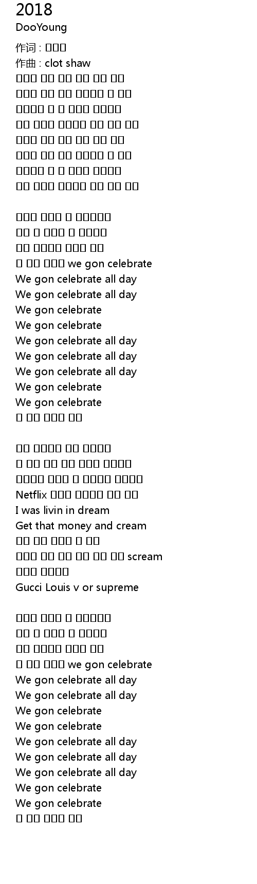 | 이 노래 틀고선 we gon celebrate | |
