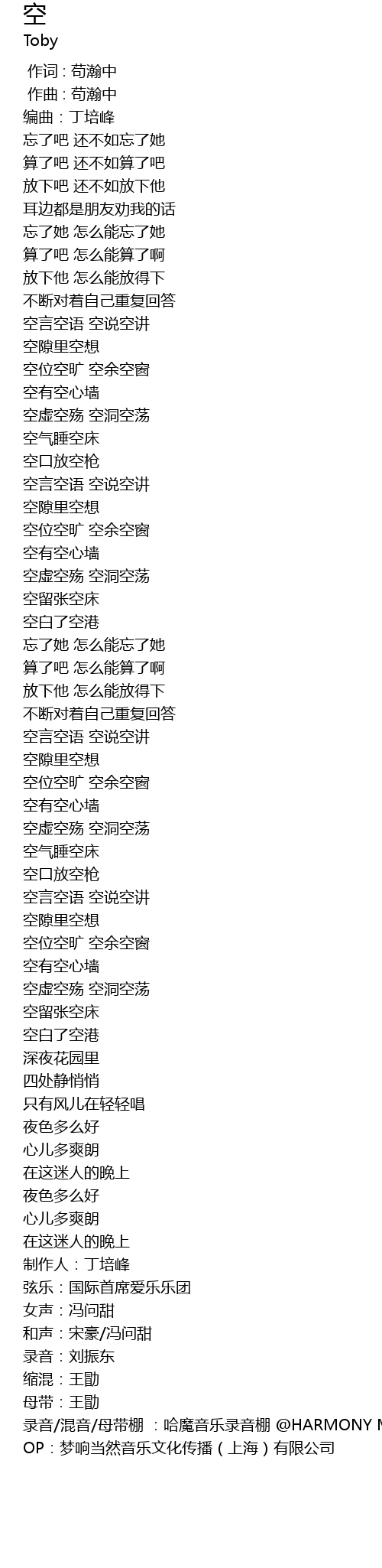 | [01:56.14] | kōng wèi kōng kuàng kòng yú kōng chuāng |