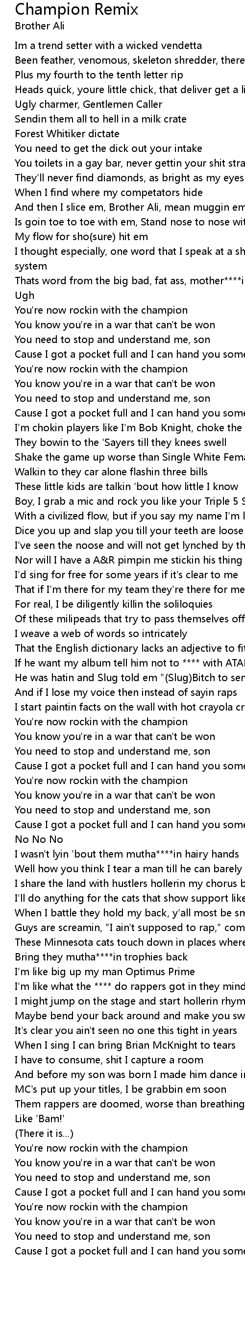 Thats word from the big bad, fat ass, mother****in, Brother Ali |