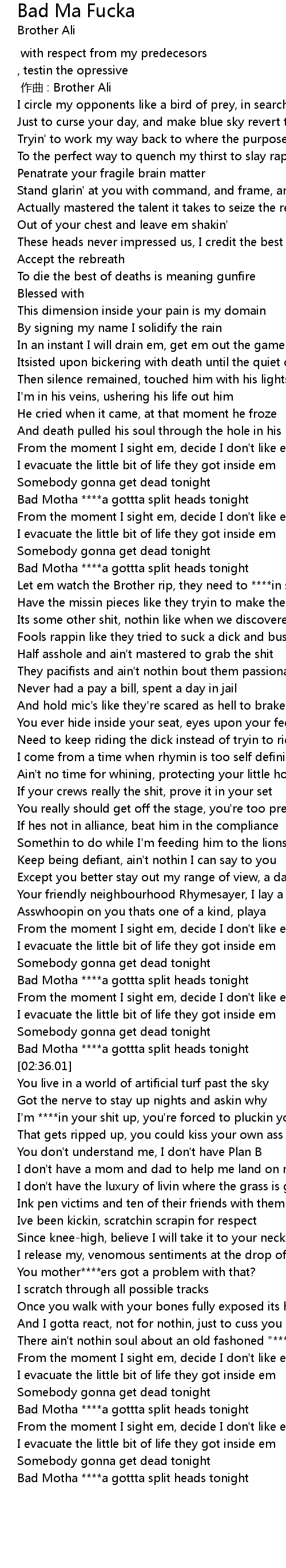 | [02:34.29] | Bad Motha ****a gottta split heads tonight |