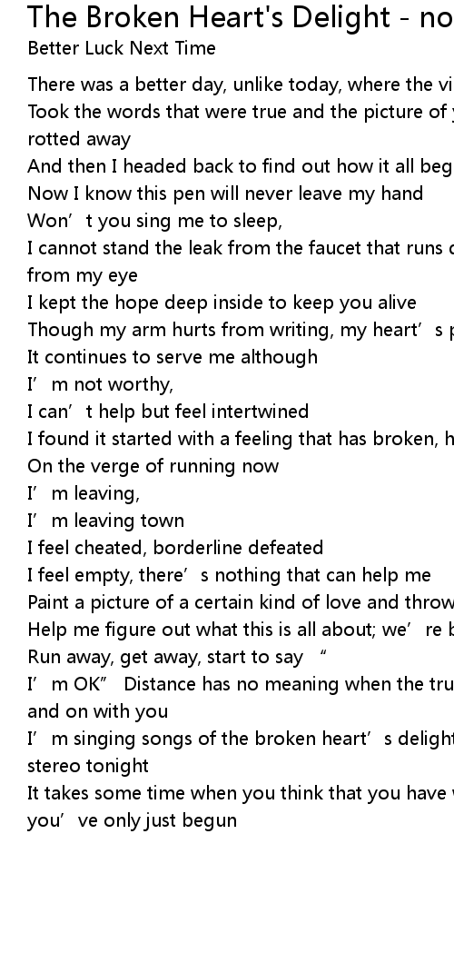 | I’m singing songs of the broken heart’s delight, a message sent to your stereo tonight | |