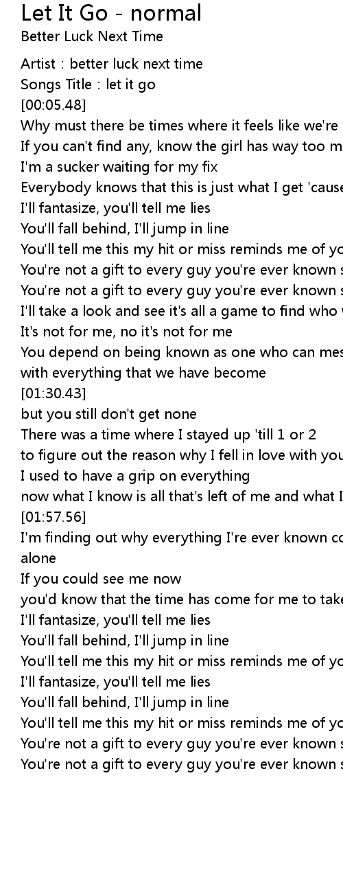 | [02:56.74] | You're not a gift to every guy you're ever known so let it go |