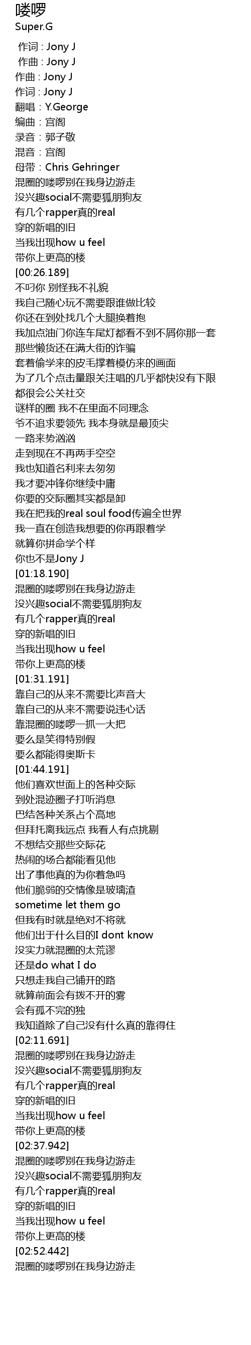 | [02:32.192] | yǒu jǐ gè rapper zhēn de real |