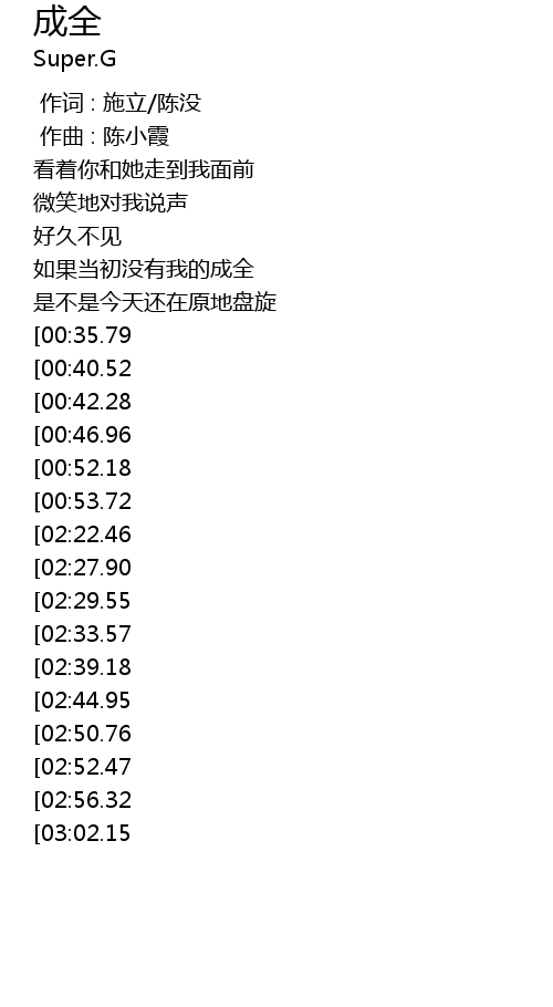 | [03:38.12][02:29.55][01:06.70] | 谢谢你的成全 |