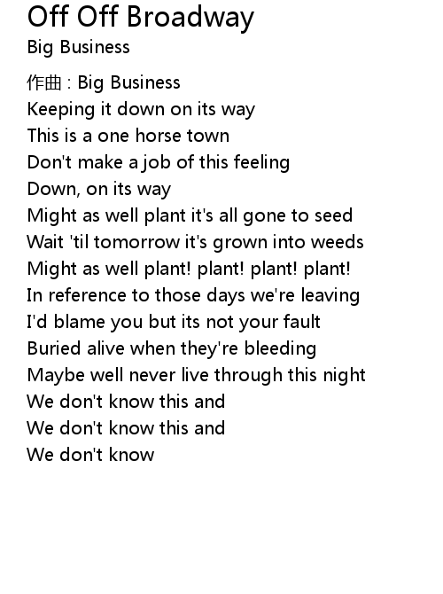 | Song | Off Off Broadway |