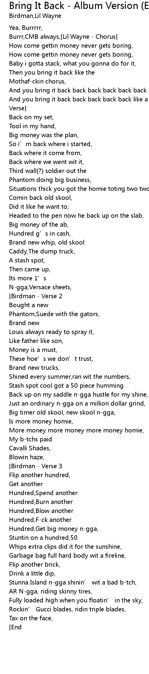 | And you bring it back back back back back like a motherfckin chorus, Birdman Verse | |
