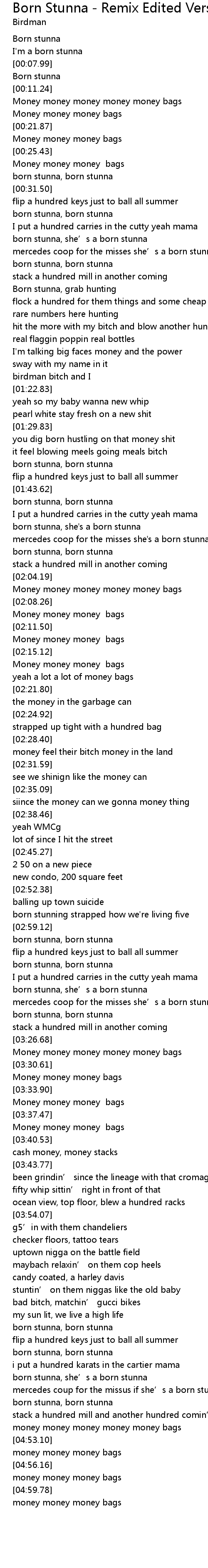 | [03:16.35] | mercedes coop for the misses she' s a born stunna |