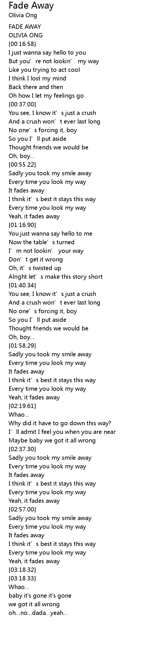 | [00:03.73] | FADE AWAY |