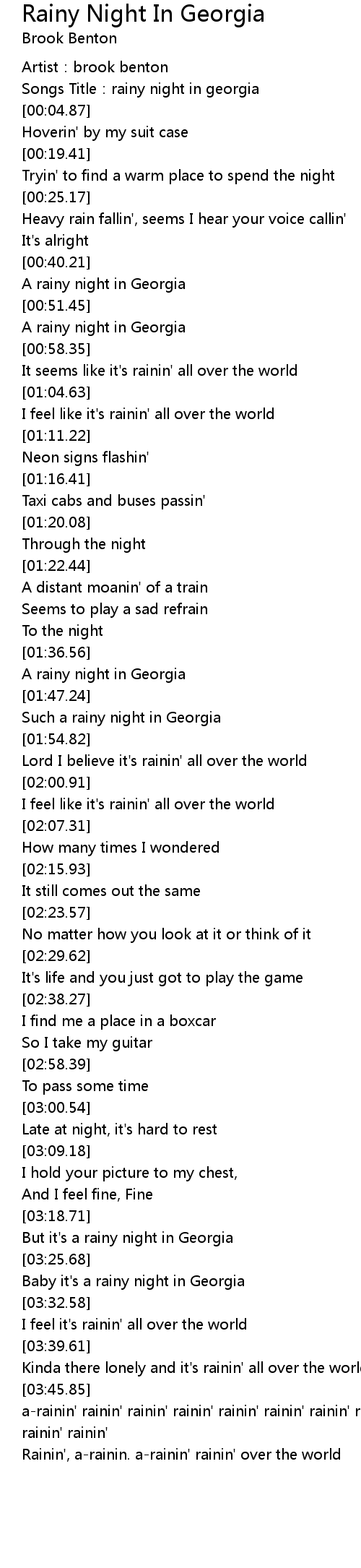 | [01:50.25] | Such a rainy night in Georgia |