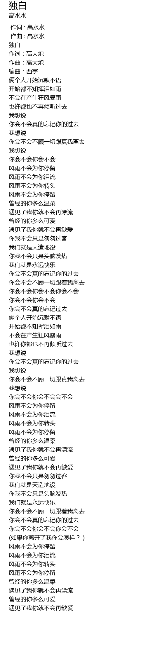 [00:00.000] 作词 : 高水水