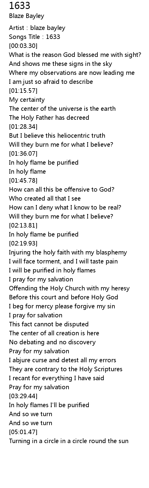 | [03:04.29] | Offending the Holy Church with my heresy |