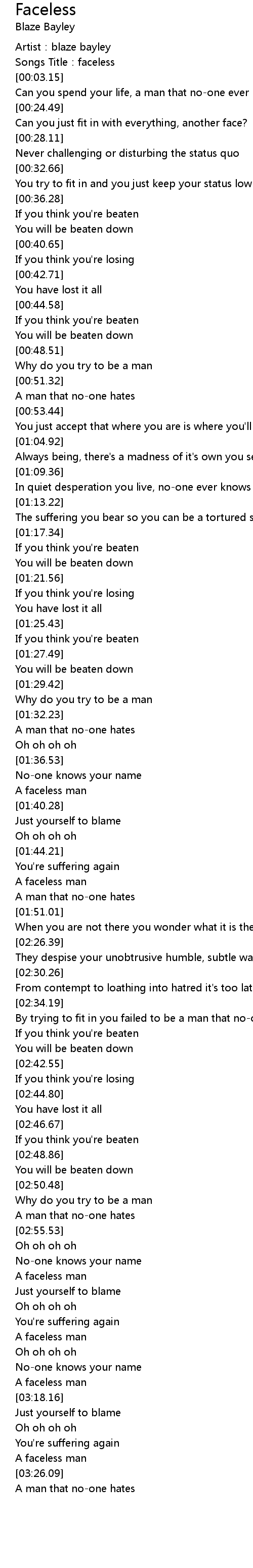 | [02:59.94] | A faceless man |