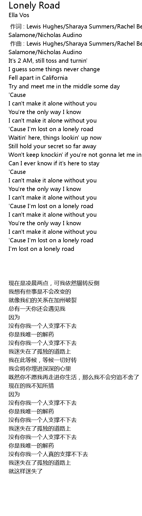| [02:53.68] | ' Cause I' m lost on a lonely road |