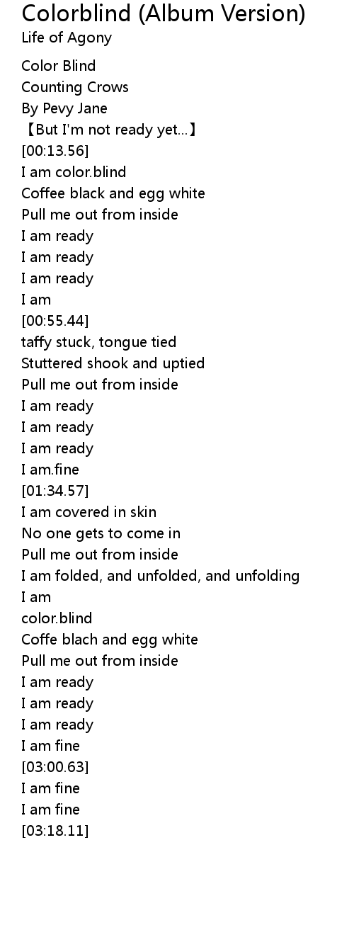 | [00:09.56] | 【But I'm not ready yet...】 |