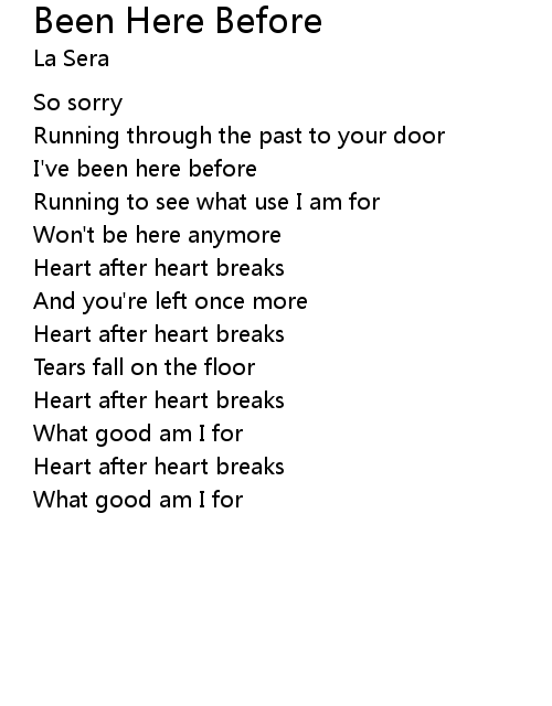 | I've been here before | |